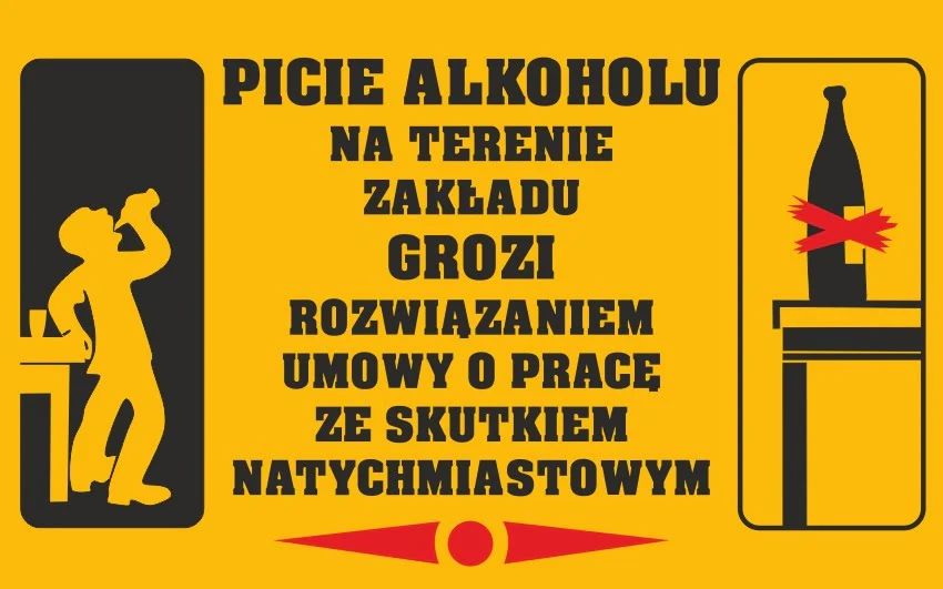 Picie alkoholu na terenie zakładu grozi... - tablica PRL