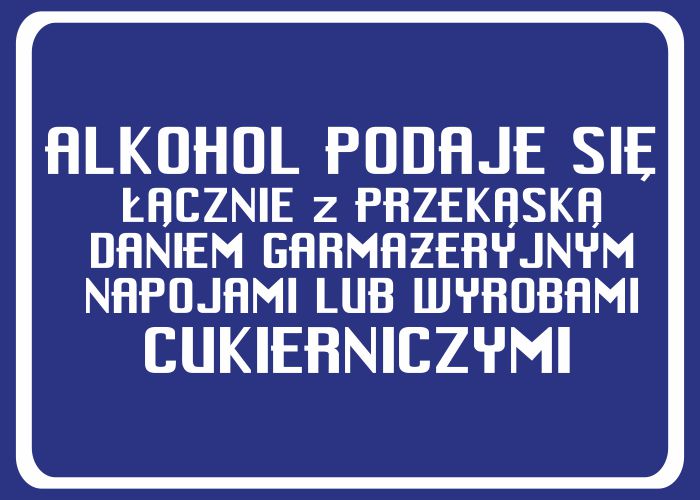 Plakat: Alkohol podaje się łącznie z przekąską...